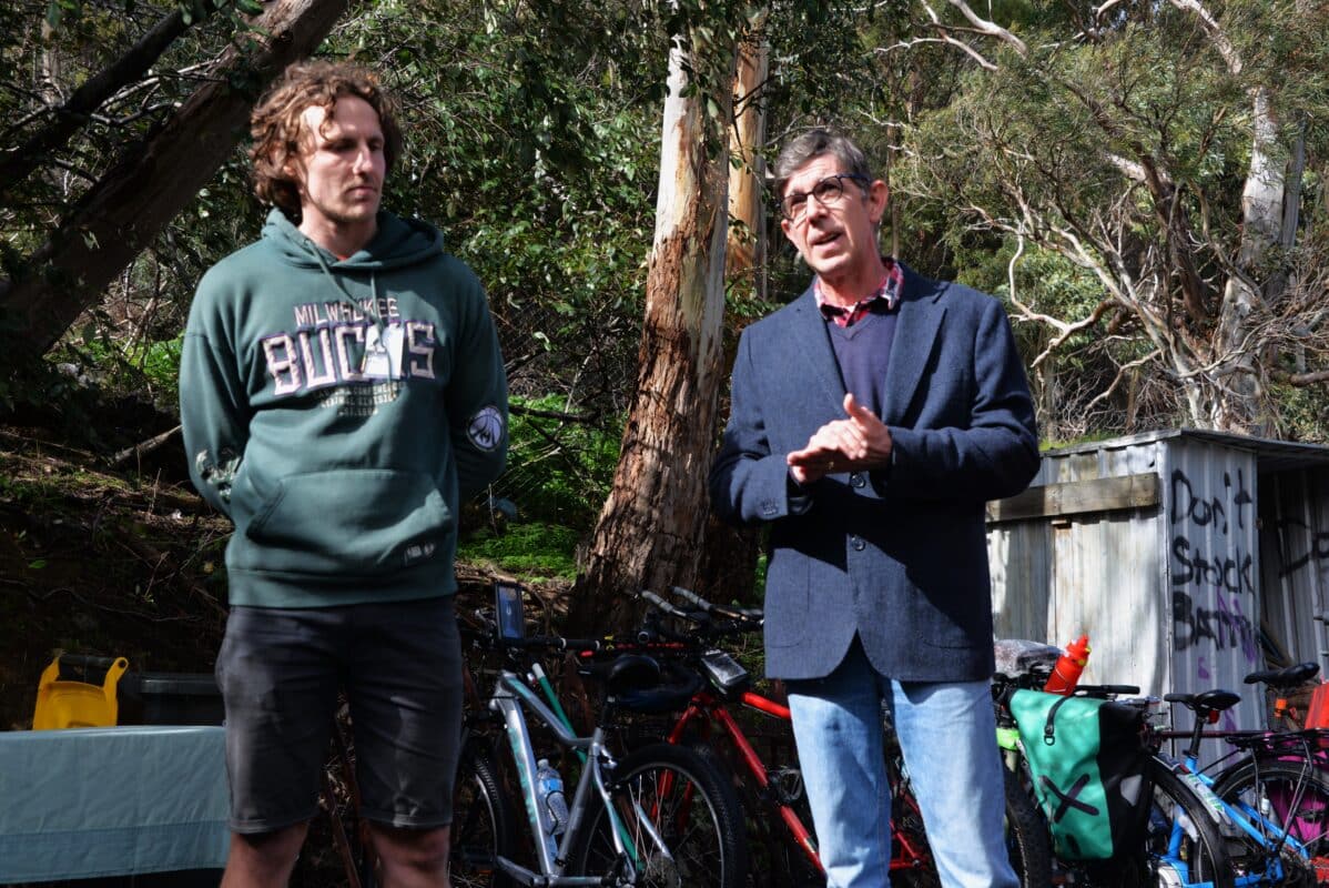 Hobart Bike Kitchen President Paul Kennedy, chef Mark Parssey and Hobart councillor Ben Lohberger spoke on the day, and member for Clark Ella Haddad and Minister for Transport Kerry Vincent paid a visit.