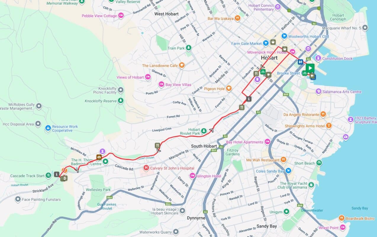 The 9km ride is a comfortable introduction to riding through the city and enjoying the Hobart Rivulet Path and its many picturesque views. Coffee towards the end of the ride at the Collins Street outdoor tables.
