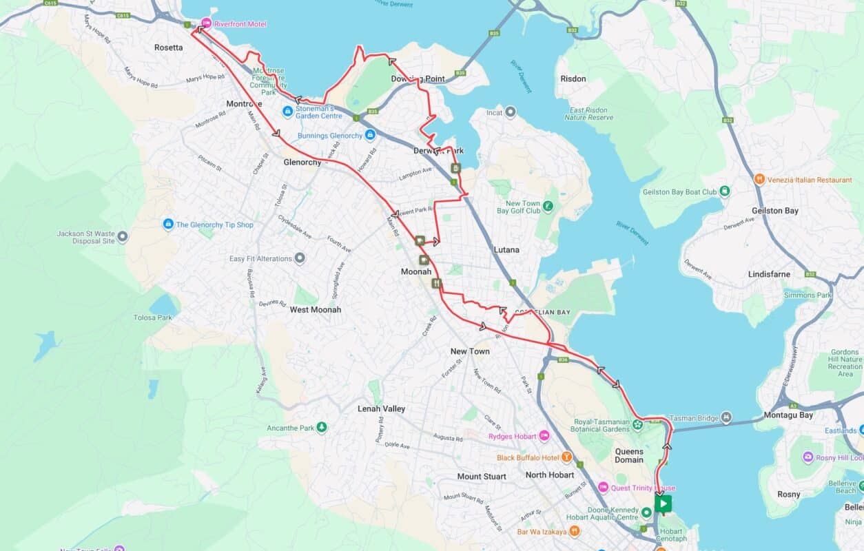 Join ride leader David at the Cenotaph car park at 9.45am to head out along the Intercity Cycleway before branching off through New Town, Derwent Park and Montrose. Returning along the cycleway.