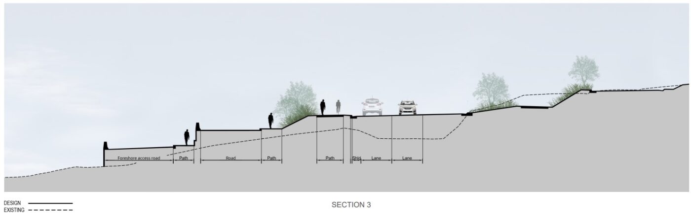 We’ve suggested the informal shortcut people use to get from the Cycleway up to the McVilly Drive path is formalised as part of the works. This could also provide a detour for path users when construction of the new road is underway.