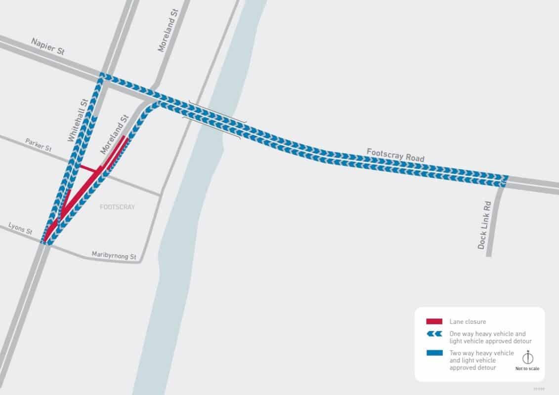 There will be periodic overnight closures to a section of Moreland Street and Parker Street in Footscray until the end of March.