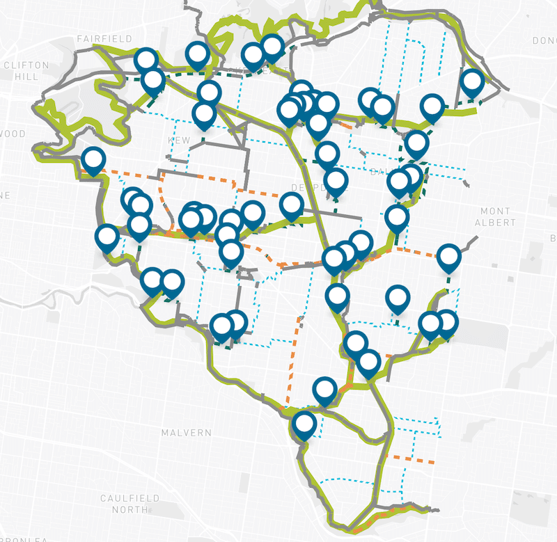 Boroondara is seeking your feedback on 30 new street-based paths to link up the existing routes in parks and reserves across Boroondara. Street-based paths could involve a shared path, a protected on-road link or a widened footpath.