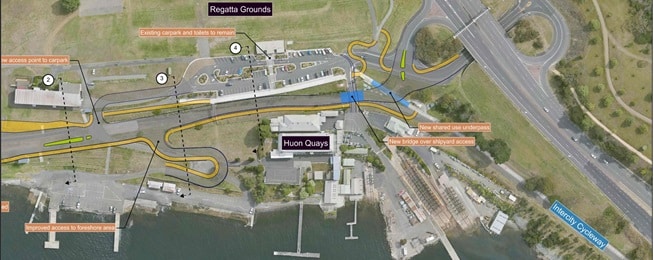 The state government is planning a new road to Hobart’s port that will arch over the Intercity Cycleway at McVilly Drive, creating an underpass for path users.