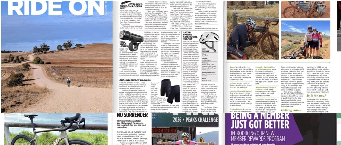 The latest edition of Bicycle Network’s member magazine Ride On is out now. Ride On Autumn ’26 is packed with adventure, advocacy and inspiration from around Australia and beyond.