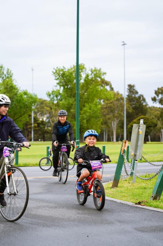 Some say you can’t buy happiness, but riding a bike with your family in tow is pretty close. The best bit, kids 14 and under ride free on our Lap of the Track and 50km!
