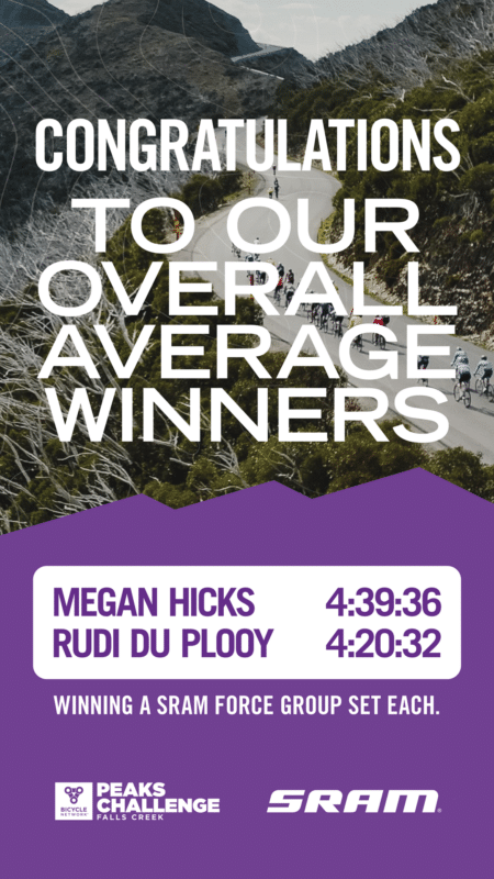 Be sure to follow the Peaks Challenge Falls Creek Facebook event for the latest news as it comes. We’ll also send regular updates to registered riders via email. If you have not received our event news please contact us to ensure you’ve opted in.
